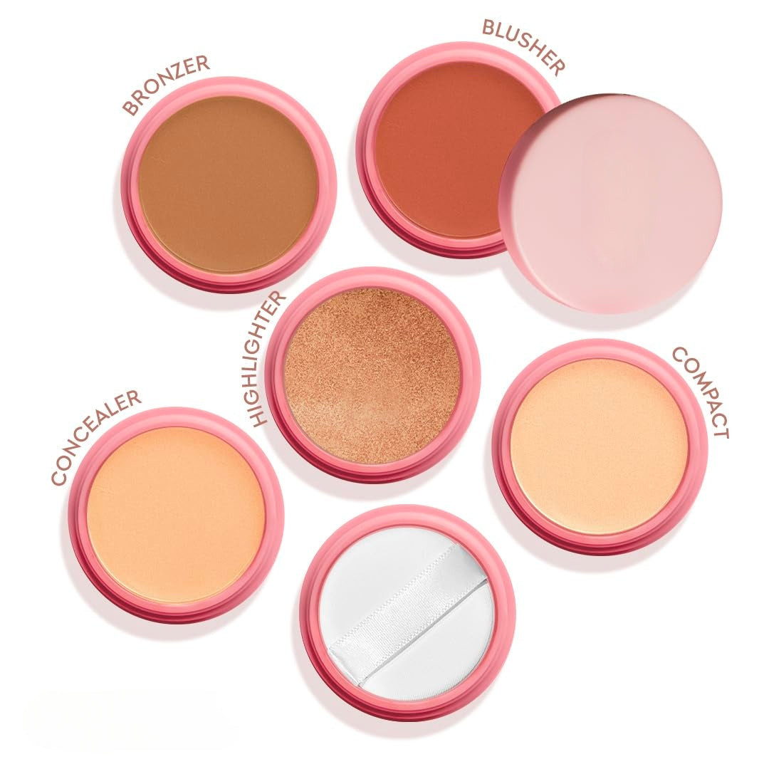 6 In 1 Makeup stack With Concealer, Bronzer, Blusher, Compact, Highlighter & Sponge Applicator Smooth & Blendable Formula - Travel Friendly, Quick & Easy to Use