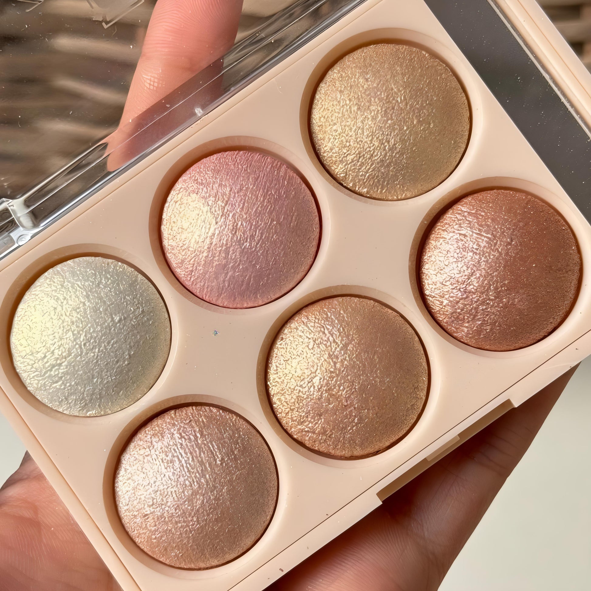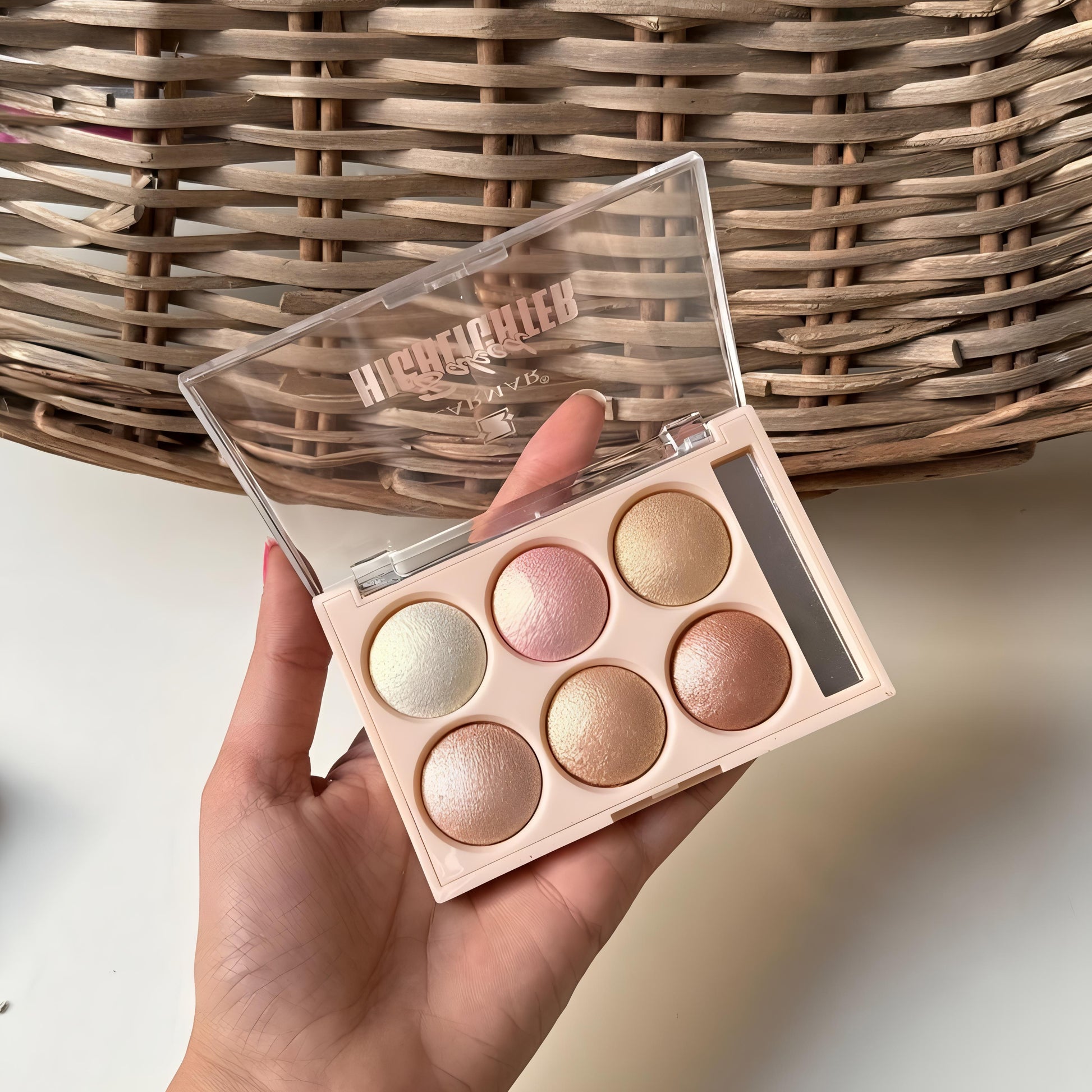 6 Shades Baked Highlighter Palette | Shimmer & Glow Face Makeup Kit