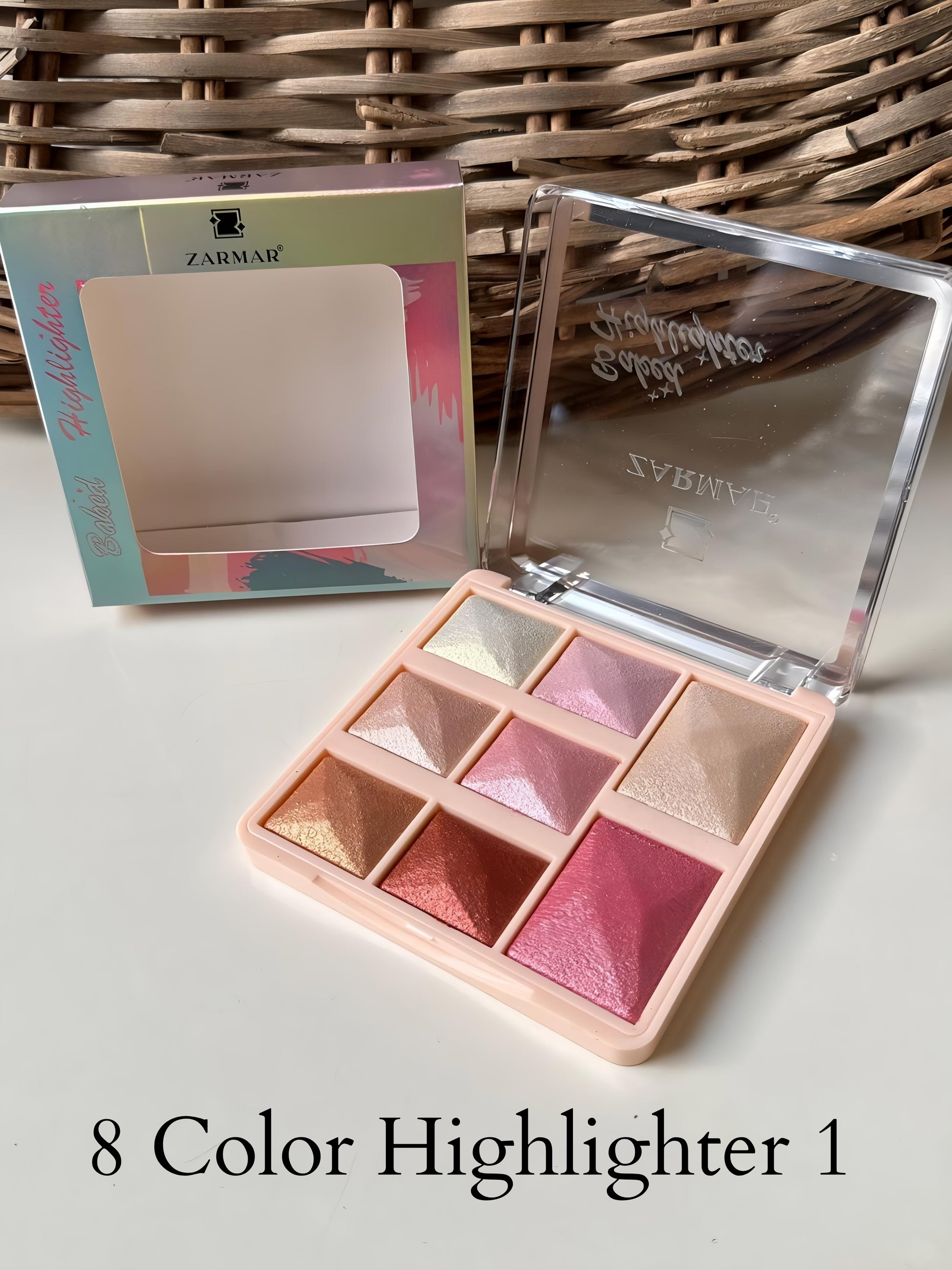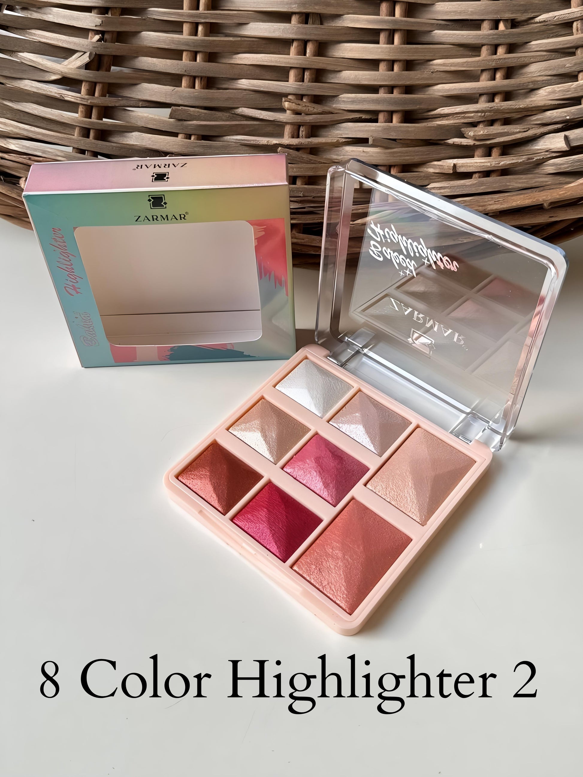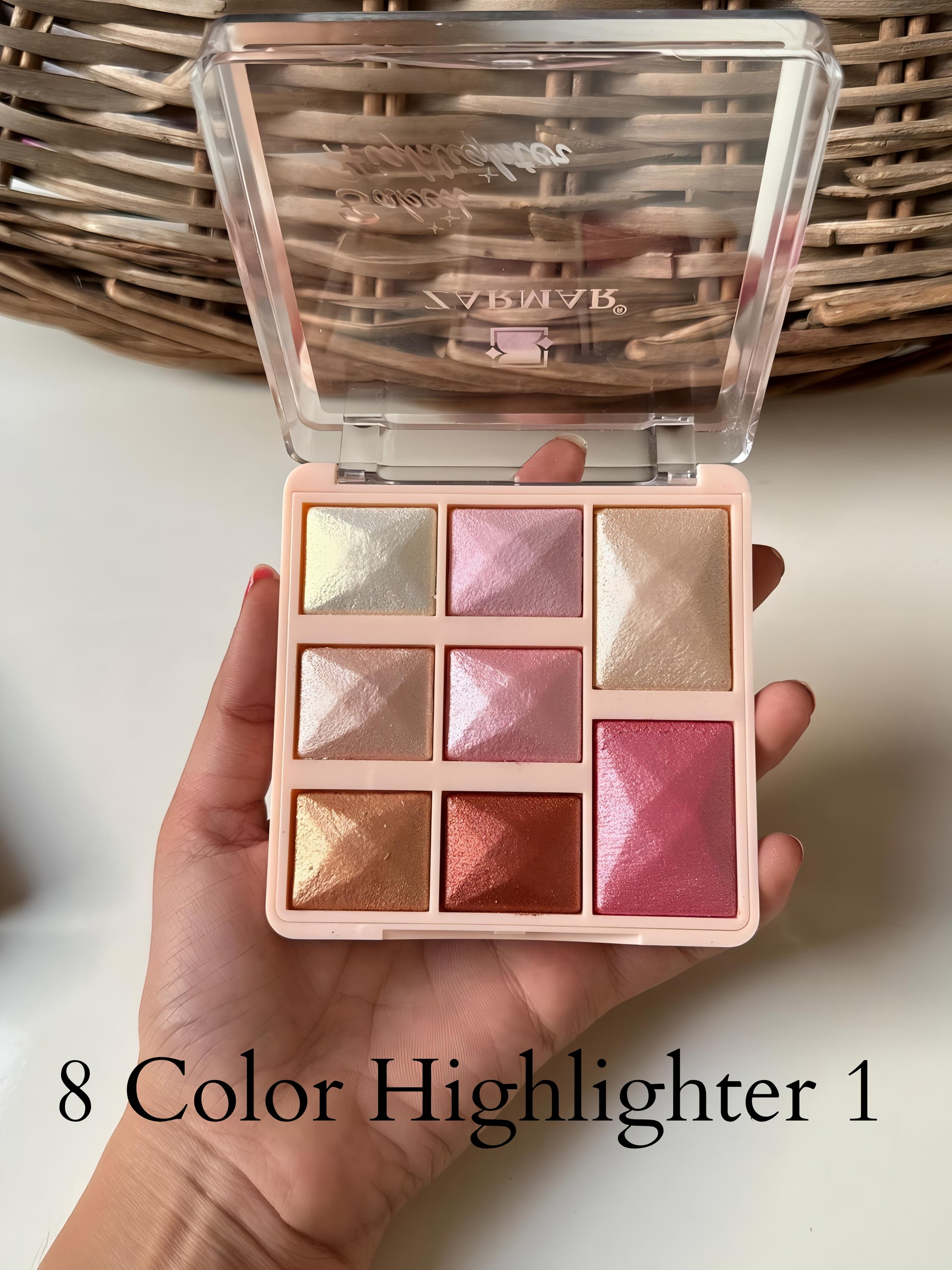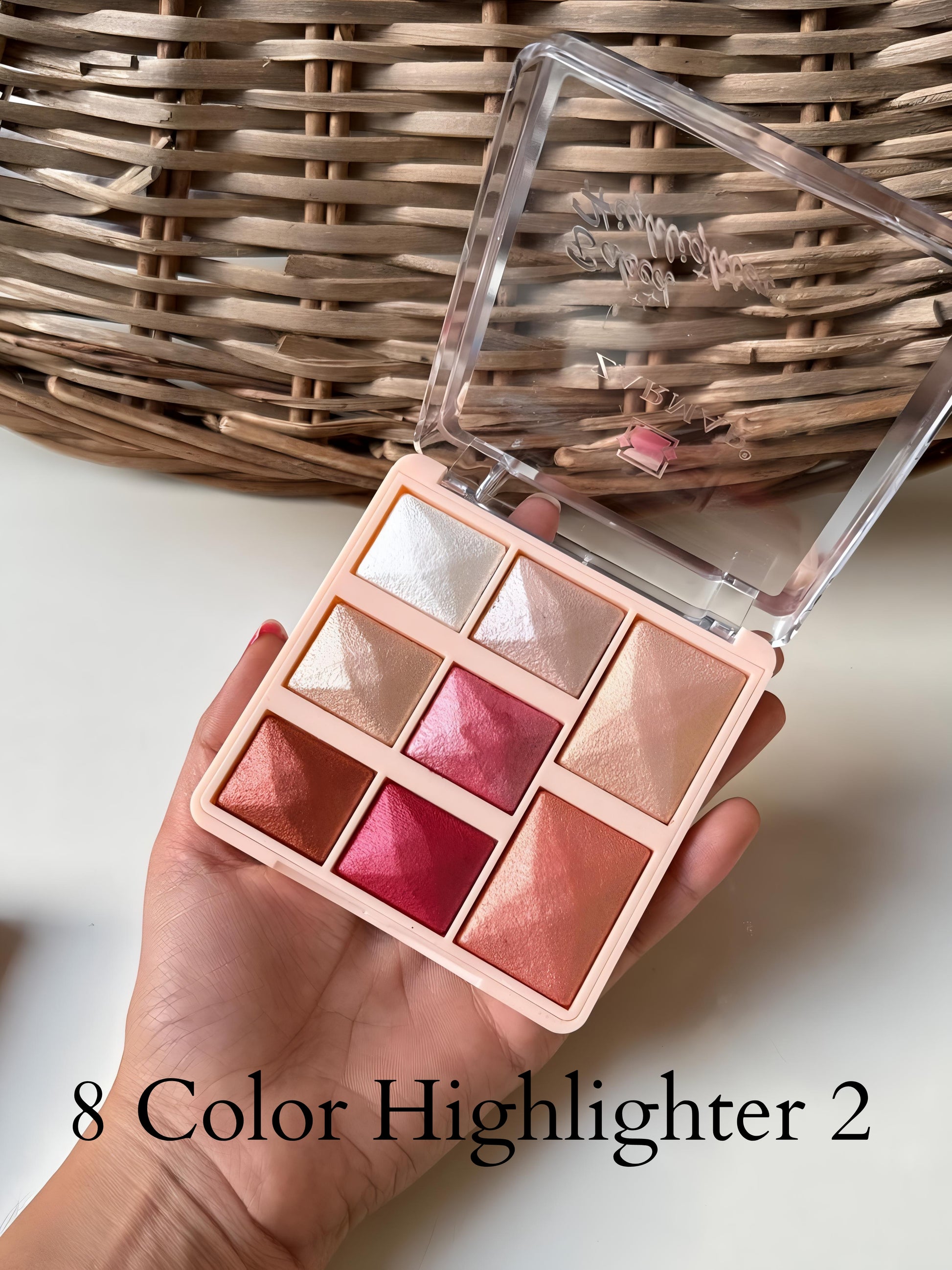 8 Shade Highlighter + Blusher Palette | Glow & Blush Combo