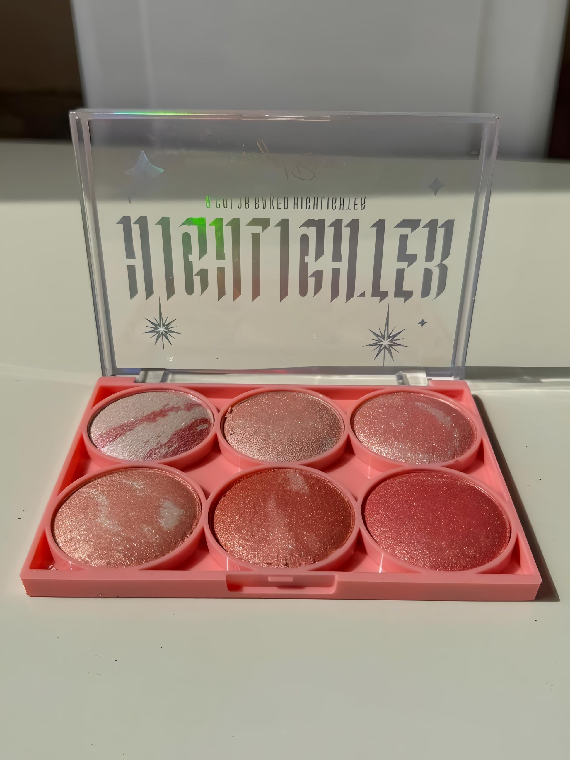 6-in-1 Baked Highlighter Palette β Shimmer & Glow Kit for Face