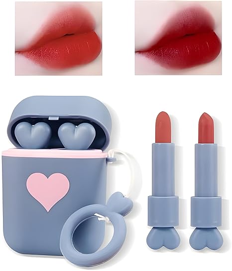Waterproof Velvet Matte Lipstick In A Cute Earbuds Case Shaped Container | 2Pc/Set Moisturizing Lip Satin