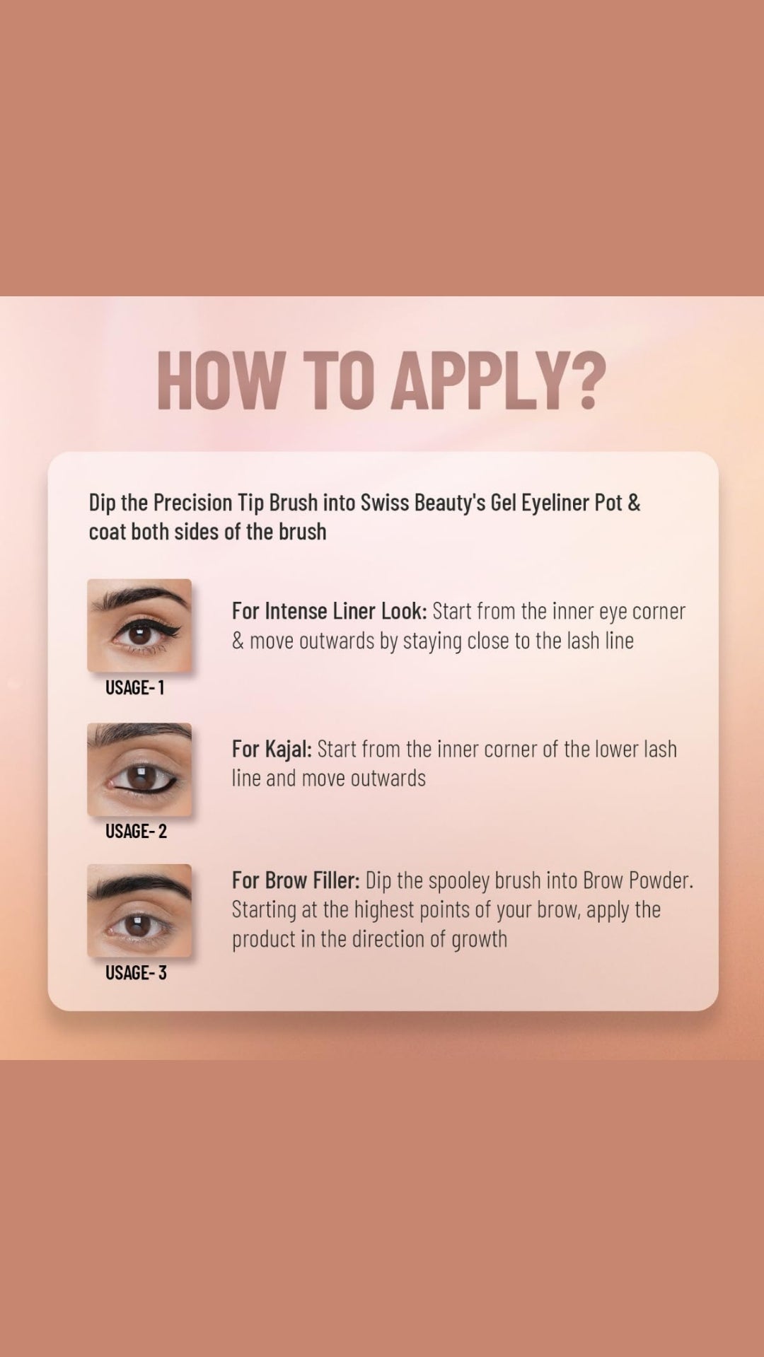 Swiss Beauty Waterproof Eyebrow & Gel Eyeliner 2 In 1 With Brush | Smudge Proof Gel Eyeliner And Eyebrow Definer Pencil Black Color