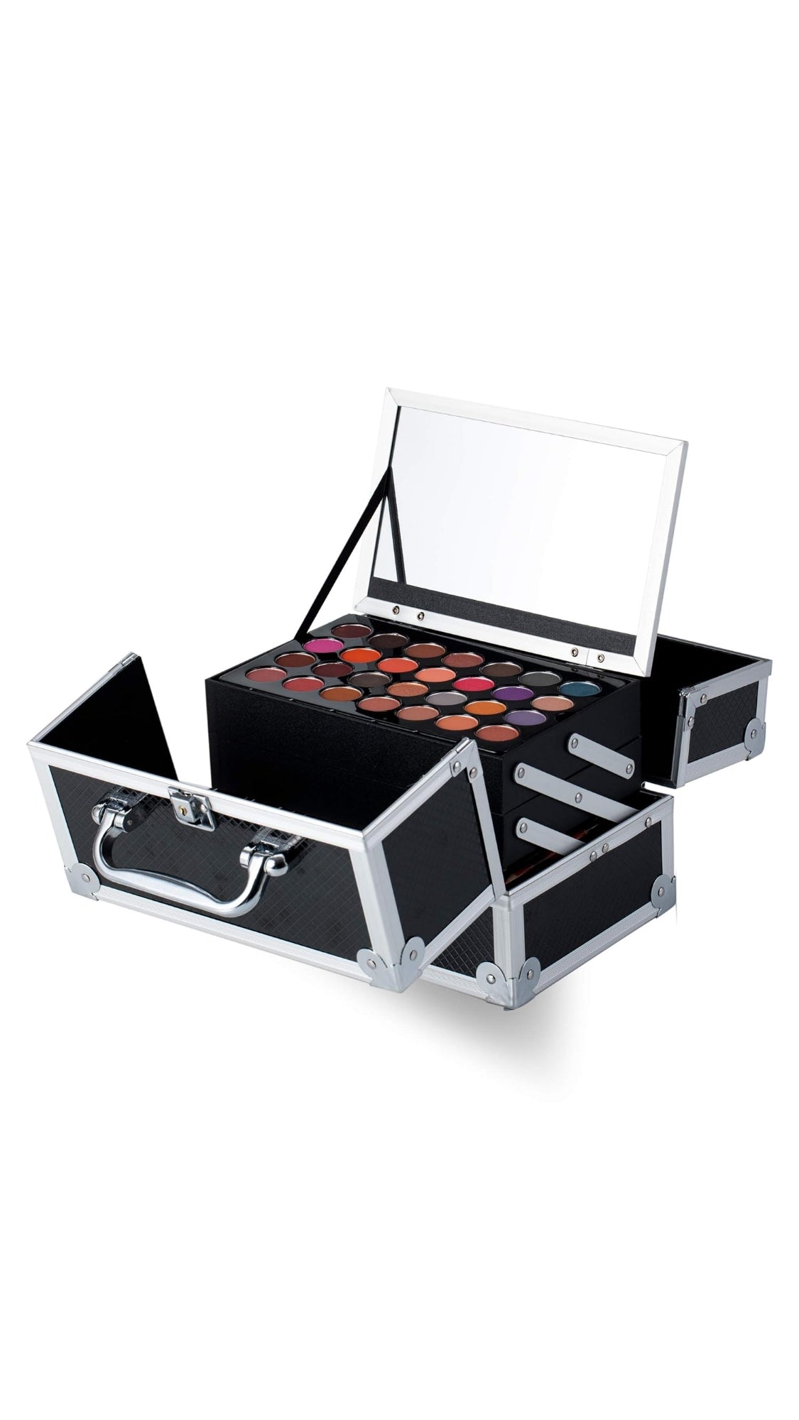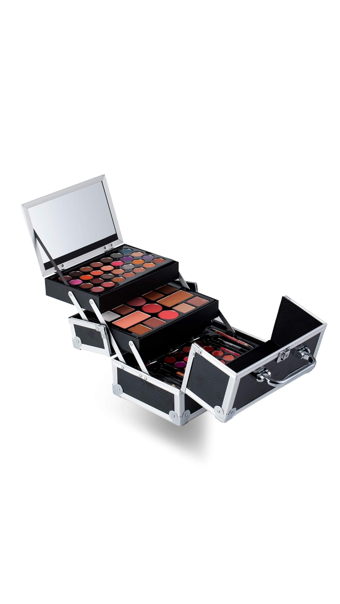 Encased in a durable fiber & aluminum vanity box, this kit is travel-friendly and perfect for makeup lovers on the go!